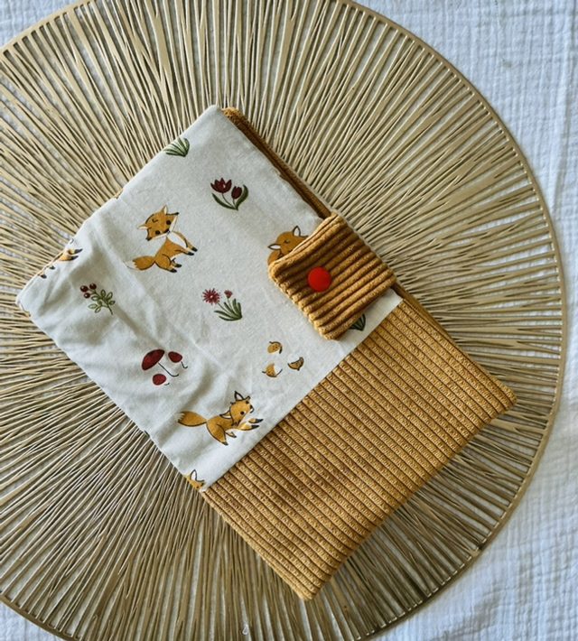 Protège carnet de santé en coton et velours côtelé modèle « Rooky »